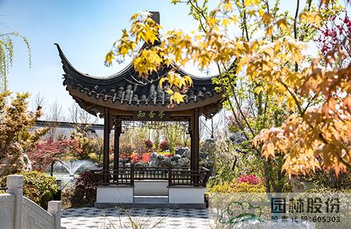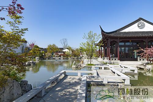 除了植物、園路等,建筑、曲橋、廊架、照壁等也在園區(qū)內(nèi)錯(cuò)落有致地分布,在有序劃分空間的同時(shí),營(yíng)造出移步換景的園林景觀。