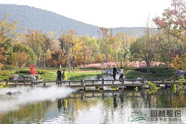 尋境:天人合一,共繪西湖。溪水順山勢而下,飛流成瀑。沿著溪邊的小路緩緩而下,跨過山腳下的 “錦帶橋”,就是“尋香”展區。“尋香”展區以樾香亭為主景,圍繞西湖四季主題花香營造氛圍,結合花境、小徑等,打造芳香沁人、繽紛多彩的五彩花園,暢享悠然自得。