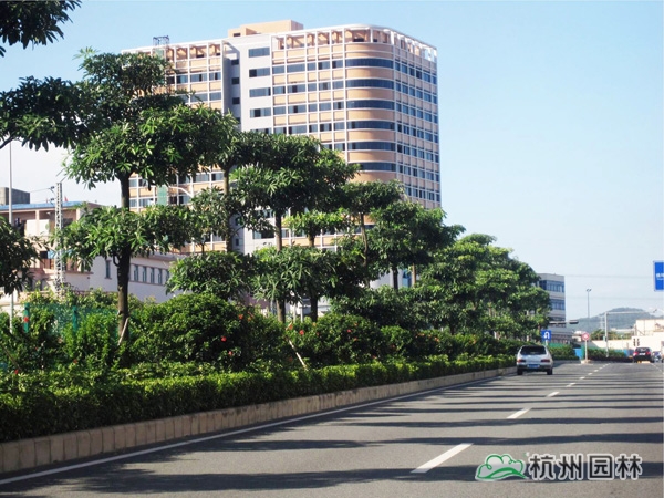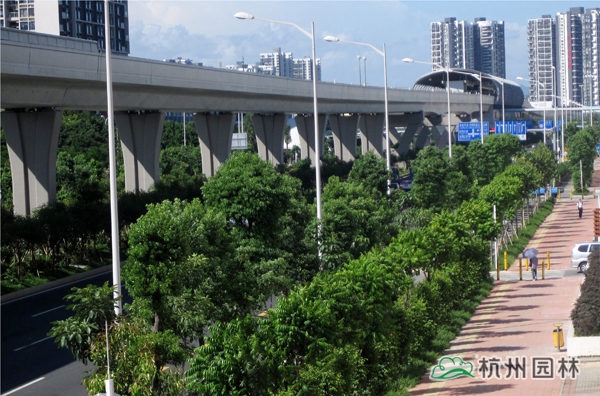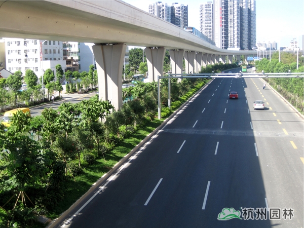 該工程位于國道205深圳段龍崗區(qū)地鐵三號線愛聯(lián)地鐵站至坪地與惠州市交界處,施工內(nèi)容包括綠化種植、綠化噴灌與管道安裝等。植物配置遵循適地適樹的原則,并充分考慮與城市風(fēng)格的吻合,兼顧多樣性和季節(jié)性,通過多層次、多品種的搭配,營造出處處有綠葉、無處不飛花,一路風(fēng)景變化萬千的城市景觀帶。