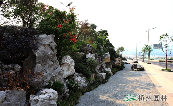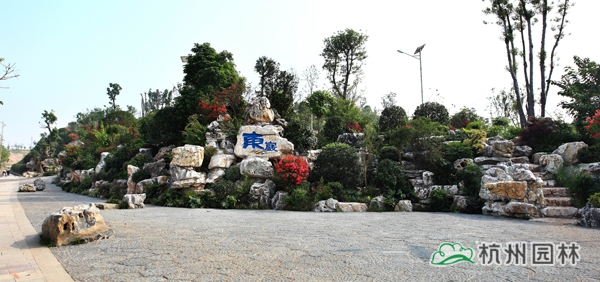 該工程位于瀘州城東長江東岸,面積近七公頃。其中,“東巖夜月”是瀘州老八景之一,景觀資源豐富。工程設計范圍為國窖大橋東岸橋頭節點,總面積近5萬平方米。設計理念以生態園林為出發點,以恢復東巖崢嶸峭壁,修復道側山體綠化,保護、改善、美化、提升區域生態環境為目標,本著以人為本、重視公眾參與的原則,充分利用現有的豐富自然資源及人文環境,規劃出一個既能滿足市民休閑娛樂,又能體現東巖公園特色的景觀場所。