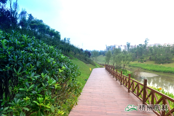 瀘州市玉帶河濕地公園(一期)工程位于四川省瀘州市龍馬潭區,施工內容包括完善公園一期120余畝范圍內園林道路、植物種植、拱橋、曲橋、水上園路、景觀亭等基礎設施建設,玉帶河片區截污干管建設等。工程于2013年8月開工,2014年5月竣工,歷時9個月。該工程榮獲“2014年度浙江省優秀園林綠化工程銀獎”。