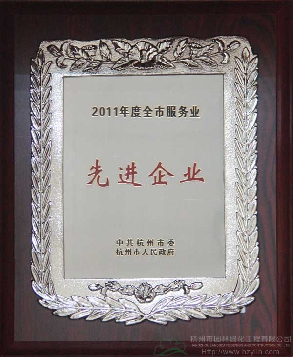 近日,中共杭州市委、市政府對(duì)2011年度在現(xiàn)代服務(wù)業(yè)發(fā)展中取得突出成績的先進(jìn)單位和個(gè)人進(jìn)行了通報(bào)表彰,杭州市園林綠化工程有限公司被授予了“現(xiàn)代服務(wù)業(yè)先進(jìn)企業(yè)”稱號(hào)。