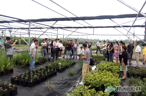 下午,杭州市園林綠化股份有限公司研發中心技術員劉華紅帶領大家來到畫境?徑山生產中心進行實地參觀。結合研發中心開展的一個除草劑試驗,劉華紅向大家介紹了試驗的設計思路、處理設置,展示了拔綠(Barricade)、莠去津(Atrazine)等4種除草劑不同濃度處理的除草效果,初步指出正常用量的拔綠對多種庭院植物容器苗的除草效果較好。