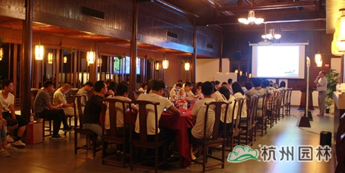為避開白天的炎炎酷暑,不影響各崗位人員的業(yè)務工作,8月1日晚,杭州畫境種業(yè)有限公司在青山湖花園中心青風居內組織了一場容器苗生產技術的培訓活動,畫境種業(yè)總經理黃民強、副總經理趙斌及來自各部門的40余人參加了培訓。