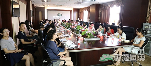 8月17日,杭州市園林綠化股份有限公司2016年半年度通訊員工作會議在8樓會議室召開,來自各部門的14名通訊員參加了會議。會議由企劃部經理、《園冶》報責任編輯鐘晴主持。