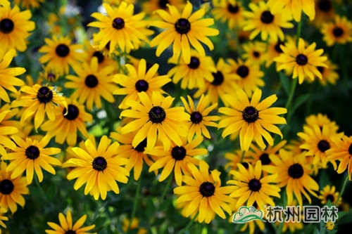3月21日上午,杭州市園林綠化股份有限公司組織總工辦、研發中心、花園中心部分員工參加了杭州市園林綠化行業協會組織的宿根花卉養護技術培訓,收獲頗豐。通俗地講,宿根花卉是指植株地下部分可以宿存于土壤中越冬,翌年春天地上部分又可萌發生長、開花結籽的多年生花卉。該類花卉一年種植可多年開花,是城鎮綠化、美化極適合的植物材料。講課老師推薦了多種適應性強的宿根花卉,如金光菊、松果菊、金雞菊、柳葉馬鞭草、假龍頭、天人菊、黃金菊、美麗月見草、天藍鼠尾草、美女櫻等,并圍繞常見宿根花卉的生長習性、栽植要點、養護管理三塊內容進行講解,課后實地演示黑心金光菊的養護修剪。現將課程中老師介紹的宿根花卉品種簡單介紹下: