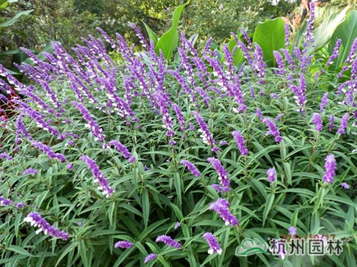 紫絨鼠尾草,莖直立,株高100~160厘米,花期9月上、中旬至霜降。該種適應性強,花期遲,栽培容易,繁殖容易,是一種適合推廣的花境植物。需肥量較其它鼠尾草大,需多施基肥。