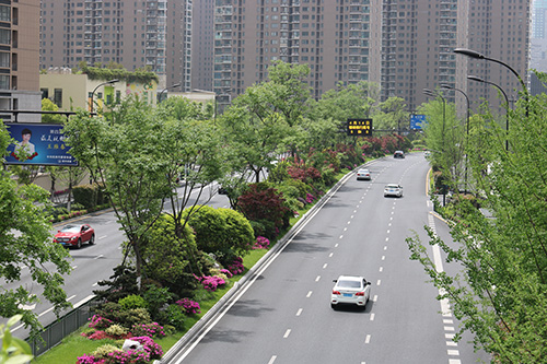 項目南起新業路,北至曇花庵路,全長約1750米,是集綠化、美化、文化等為一體的景觀大道,四季特色分明。春有日本早櫻、垂絲海棠等花滿枝頭;秋有銀杏、紅楓色彩明艷,更有桂花一路飄香;夏、冬時節風景又有不同。豐富的植物配置、色彩鮮艷的草花、文化氣息濃郁的小品……使得這條道路開闊大氣,充滿生機。