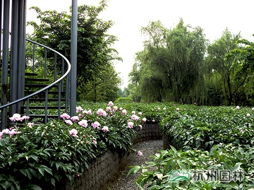 芍藥迷宮,下部采用疏松透氣的介質(zhì)作為種植筐,為芍藥提供良好的生長(zhǎng)環(huán)境。
