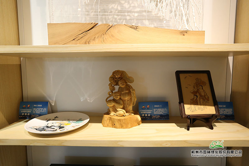 在以浙派民居為風格的主題建筑“富春山居”內,展示著來自仙居的無骨花燈、溫嶺的石雕、黃巖的翻簧竹雕、椒江的臺州玻雕、臺州刺繡等精美的展品。