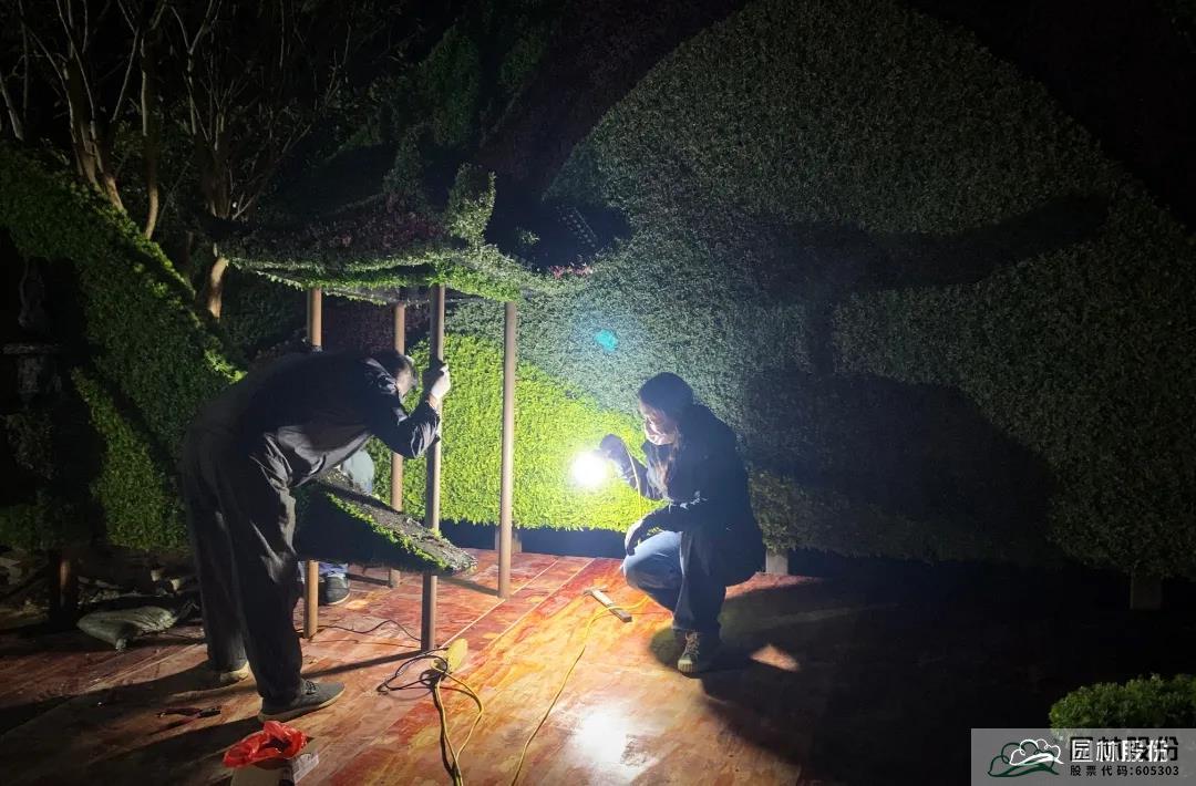 為不影響施工進(jìn)度,對綠雕局部拆卸后移至指定位置,并按要求二次拼裝。而拼裝后的綠雕,部分作業(yè)面變窄,給插草工作帶來了較大不便。