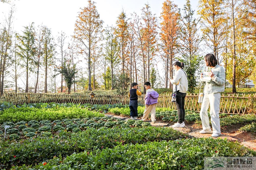 聽完美麗浙江的精彩故事,繼續前行。推開后院半掩的木門,園內一畦畦綠油油的香菜、紫甘藍、大白菜、萵苣、芹菜、小蔥等長勢喜人,山楂、石榴、香泡、柿子等果子在枝頭飄散著淡淡的果香,銀杏、楓樹、黃櫨等色葉樹紅黃交錯,鄉土植物的配置強化了民居空間的山地氛圍和景觀特色,生態菜園景觀勾勒出錢塘人家的現代田園風情。