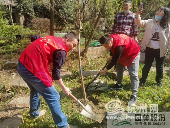 同時,在上城區人大代表、杭州市園林綠化股份有限公司董事長吳光洪的大力支持下,不僅精心挑選苗木,還派出了專業技術指導,為和諧嘉園南苑群眾辦實事,為小區增色彩。在社區新時代文明實踐志愿者們的共同努力下,此次南苑的植樹活動共種植銀姬小蠟、紫薇、杜鵑等品種綠植二十余棵。