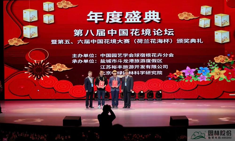 園林股份副總裁李壽仁(左二)上臺(tái)領(lǐng)取特級(jí)花境師證書(shū)