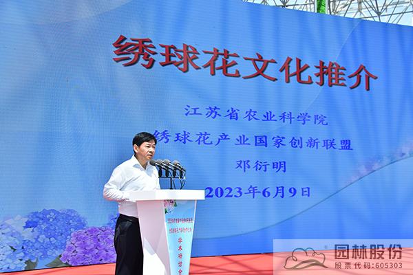江蘇省農(nóng)科院休閑農(nóng)業(yè)研究所副所長、繡球花產(chǎn)業(yè)國家創(chuàng)新聯(lián)盟專家委員會副主任鄧衍明作中國繡球花文化推介,著重講述了繡球花的文化起源,“始于唐,興于宋,流行于明清,盛行于當下”,并建議沭陽要充分發(fā)揮自身的地理氣候優(yōu)勢和電商產(chǎn)業(yè)優(yōu)勢,大力發(fā)展繡球盆花和花文化產(chǎn)業(yè),助力沭陽花卉產(chǎn)業(yè)的高質量發(fā)展。