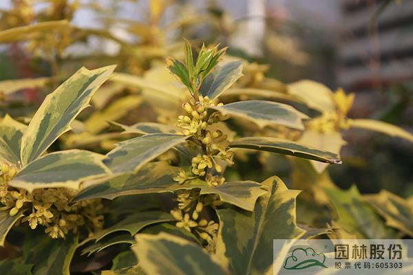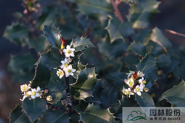 其中,彩葉冬青更是其中的佼佼者。除了果實可供觀賞外,它們還擁有黃色葉、藍綠色葉和銀邊葉等彩色葉片。葉形變異也是相當豐富,具四角狀,橢圓形,倒卵形等多種形狀;有些品種具有刺狀葉片,而有些則是光滑的葉片;有些品種葉緣還具有波浪狀的起伏。四季景觀分明,在春季,它們的莖腋間會簇生出一朵朵清新可愛的小花;而在當年生的枝條上,則會抽出亮麗的嫩葉。到了秋季,隨著氣溫的驟降,葉色會變得更加地明艷;冬季的時候,在雌性的植株枝條上,則會掛滿累累的果實。這些不同的形態(tài)和色彩變化,使得彩葉冬青在不同的時間和空間中呈現出不同的姿態(tài)、色彩與意境,從而提升了冬青品種的觀賞價值,成為園林景觀中重要的觀葉植物。