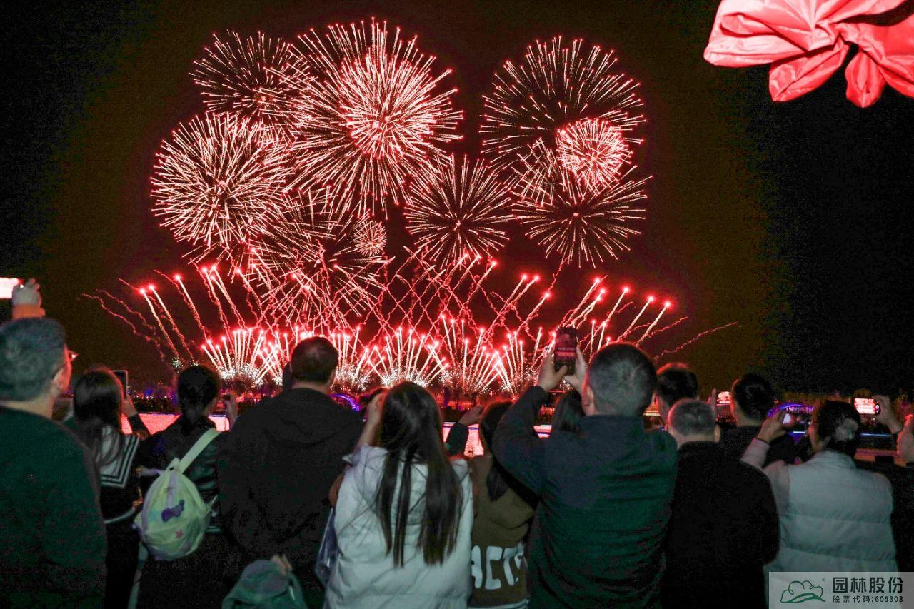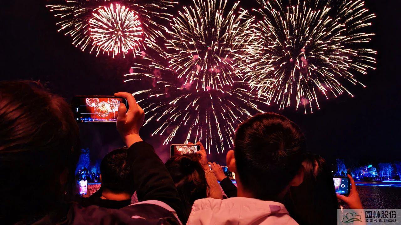 晚上8點,隨著五彩斑斕的煙花次第升空綻放,花海景區頓時變成了一個歡樂的海洋。