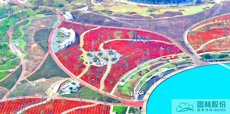 位于項目中心的天空花湖占地面積約27萬平方米,以水環、外環及花瓣環作為構成花海的主要結構體系,溪水環繞花海外圍形成花溪景觀。水環:即天空之鏡,由一片圓形淺水水面作為花海的核心區域,天水一色,行人在其上猶如在大型的鏡面游走。花瓣環:作為花海的主要元素“花瓣”,以有“英雄花”之稱的火星花作為主要片植品種,同時采用多種觀賞性花卉,如紫絨鼠尾草、矮生馬鞭草、郁金香、三角梅、粉黛亂子草等花帶打造充滿活力的花海景觀。外環:圍繞“飄落的花瓣”設計主題甄選花卉品種,采用相同花期的紅粉色為主的多年生花卉片植方式,渲染烘托中心花海的熱烈氣氛,以綠色草坪作為襯托花海的底色,引導游人近距離打卡觀賞。
