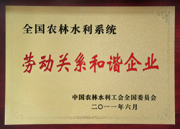 公司榮獲“全國農林水利系統勞動關系和諧企業”稱號