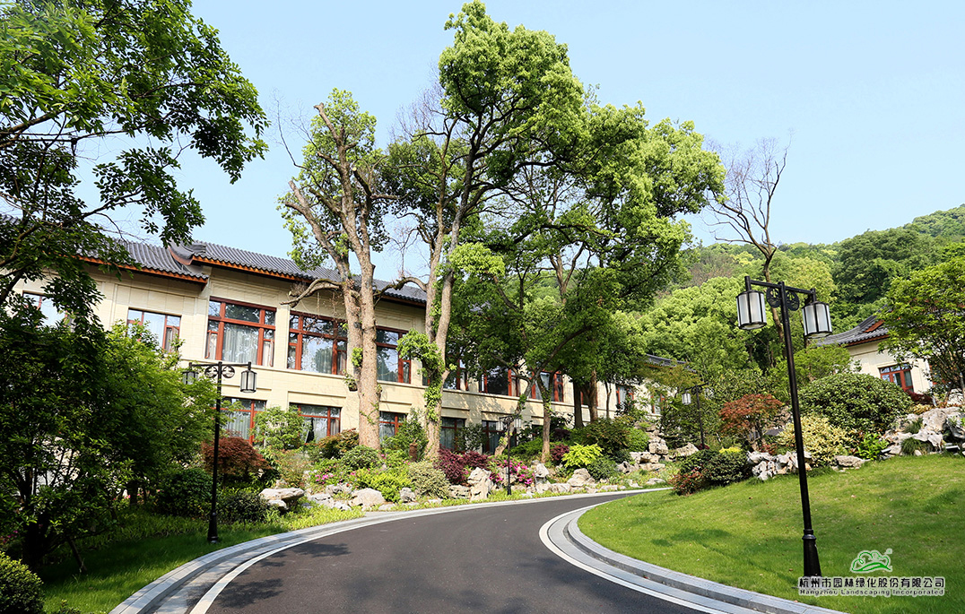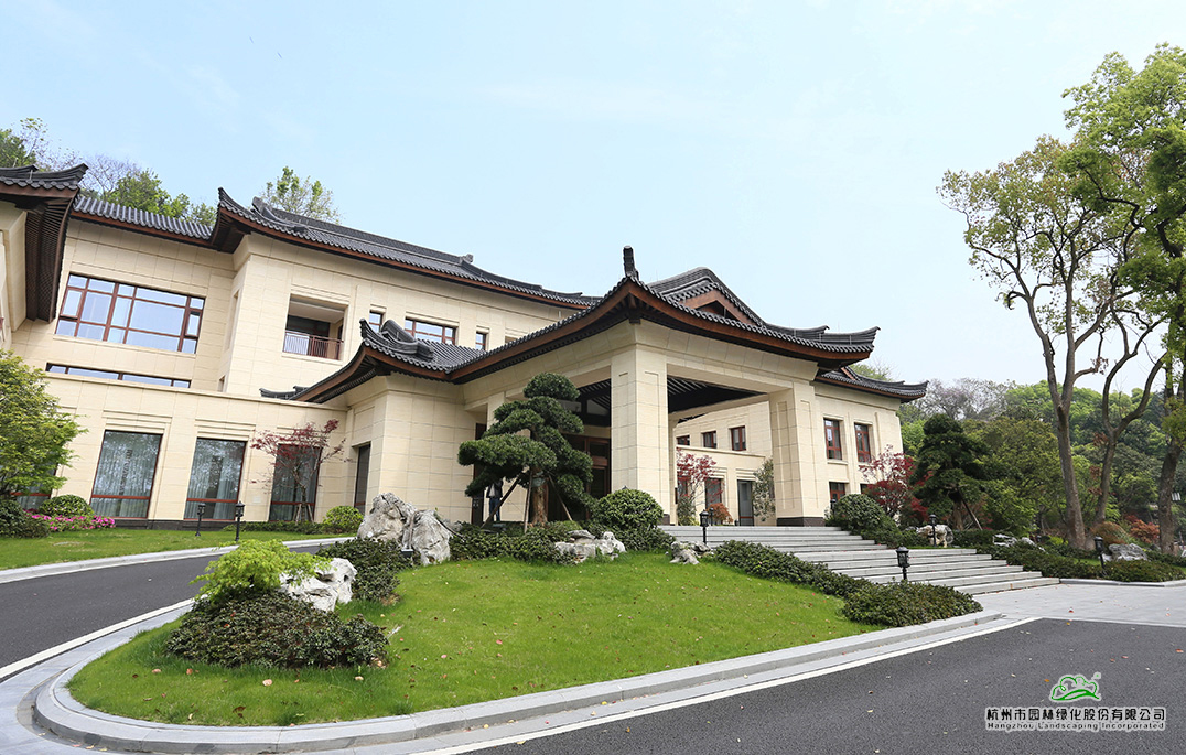 西湖山莊隨山勢而建,與西湖山水和諧相融,四周綠意盎然,風景如畫。項目充分利用場地原生態(tài)的景觀特點,依勢成景,因樹設景,文化為景,營造出建筑隱、樹林茂、花卉雅、四時賞的景觀特色。筑以山勝,境因樹幽,曠奧有度,大氣大方,成就杭州秀美新景觀。