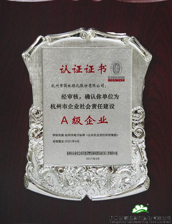 杭州市企業(yè)社會責任建設A級企業(yè)